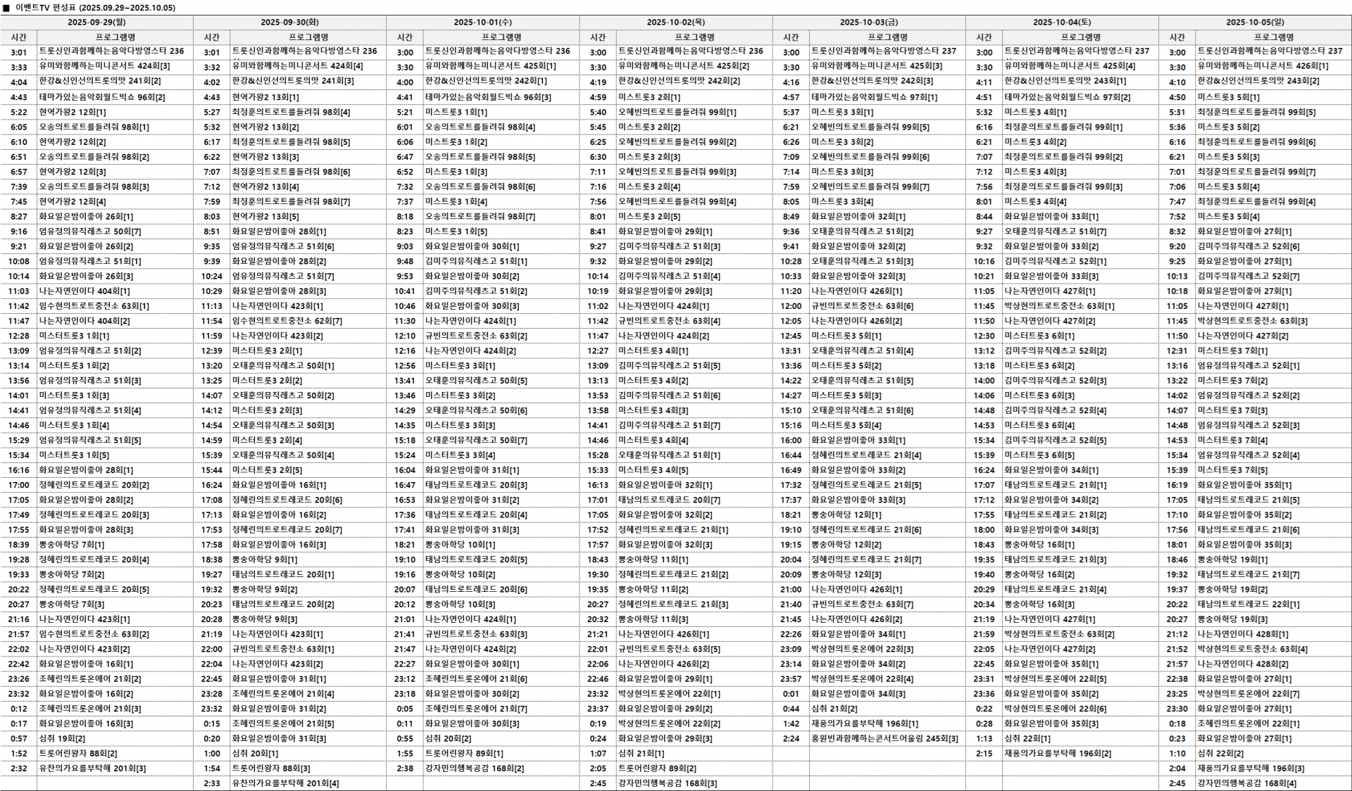 2025년 09월 29일~2025년 10월 05일 주간편성표