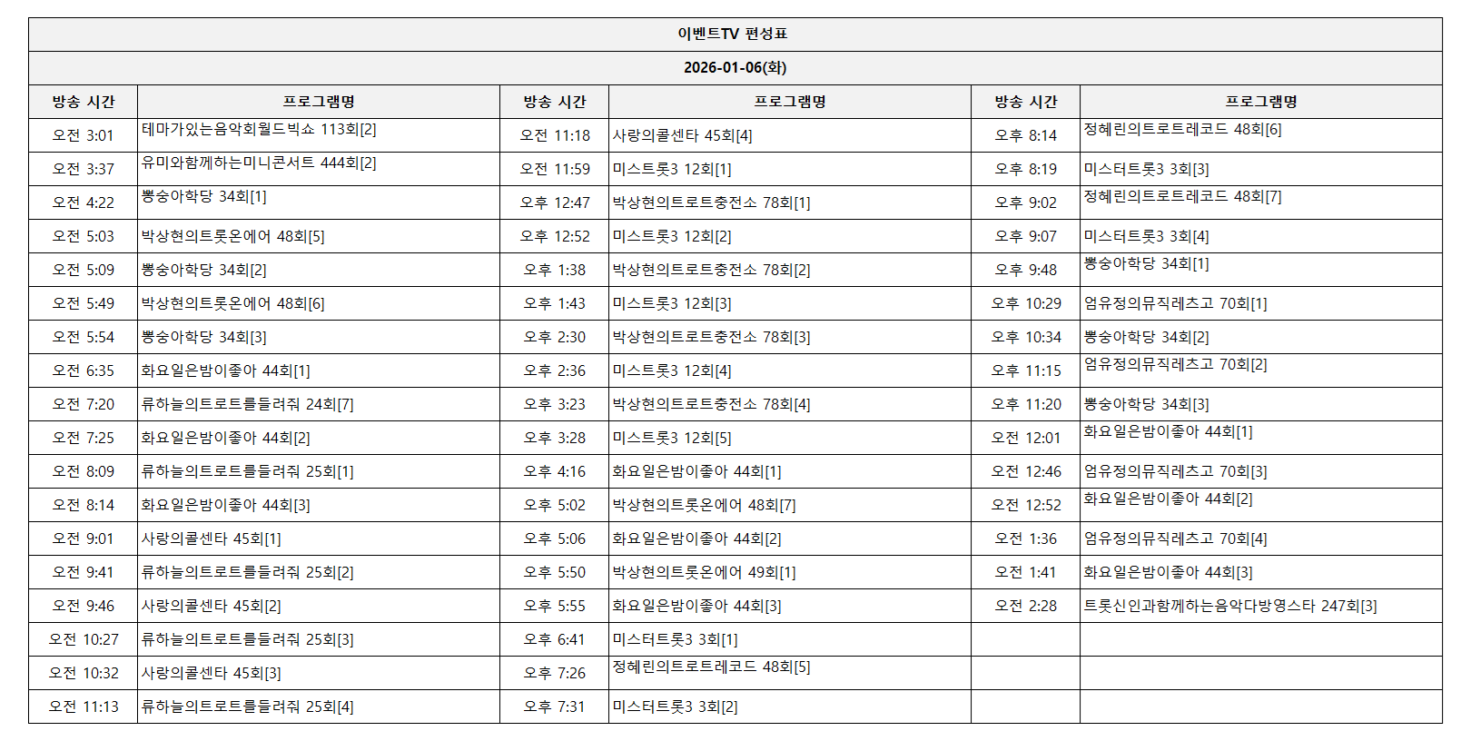 2026-01-06(화) 일일 편성표