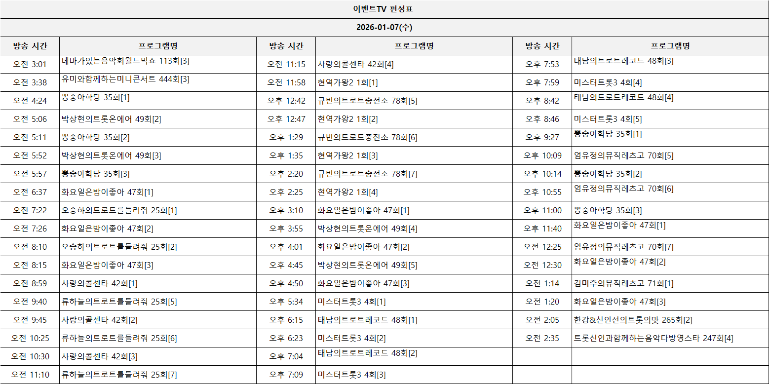 2026-01-07(수) 일일 편성표