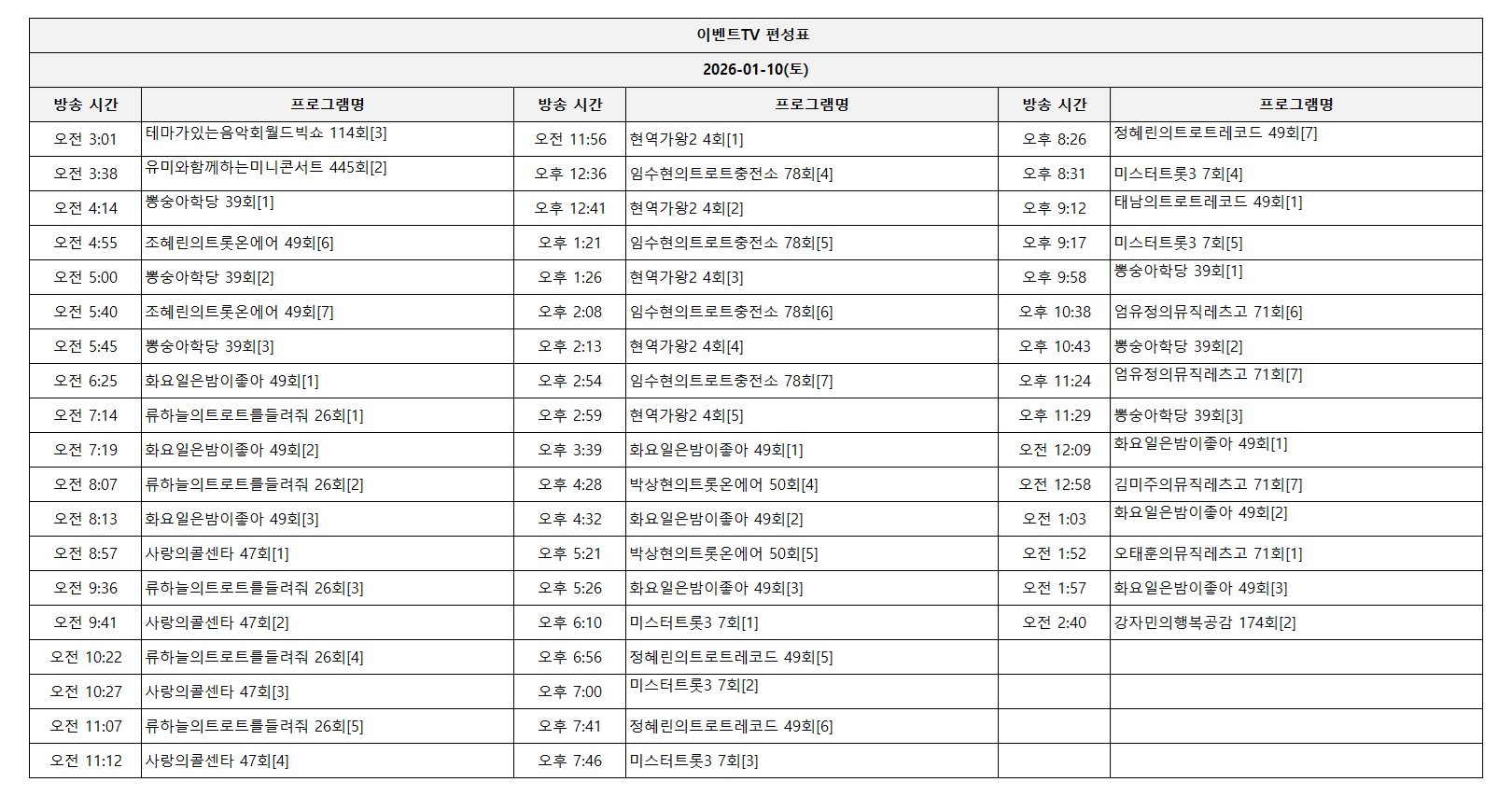 2026-01-10(토) 일일 편성표